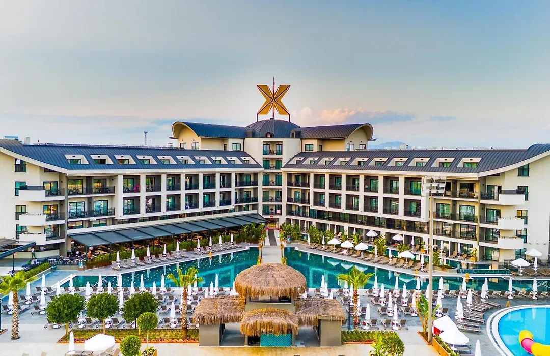 Dit The X Belek Hotel met 5 sterren beschikt over 4 glijbanen en ligt op circa 14 minuten wandelafstand van het The Land of Legends. Er is een buitenzwembad beschikbaar voor gasten, hier kunnen ze ook fietsen en darten proberen. Het hotel bevindt zich op een privé locatie in het strandgebied.